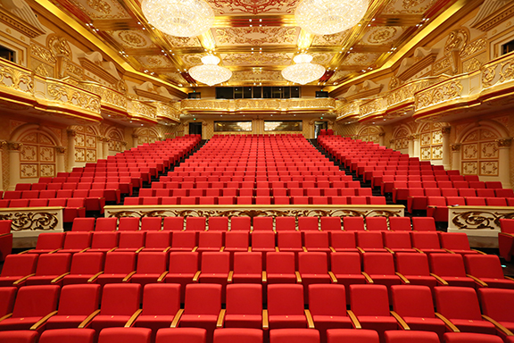 珠海華發(fā)中演大劇院坐落于珠海十字門中央商務(wù)區(qū),由世界建筑設(shè)計(jì)行業(yè)領(lǐng)先的英國羅麥莊馬公司領(lǐng)銜設(shè)計(jì),建筑聲學(xué)由位于德國慕尼黑的米勒貝姆公司設(shè)計(jì),總建筑面積約9.09萬平方米。劇院外觀獨(dú)特彰顯后現(xiàn)代主義韻味,在空中俯視猶如一架立在水中的波斯豎琴,具有鮮明的藝術(shù)特色。劇院內(nèi)設(shè)1164座、現(xiàn)代風(fēng)格的歌劇廳和806座、古典浪漫風(fēng)格的音樂廳。 其中,音樂廳自然混響時間約1.8秒,被世界殿堂級指揮家祖賓?梅塔等音樂大師盛贊為“中國最好音樂廳之一”。